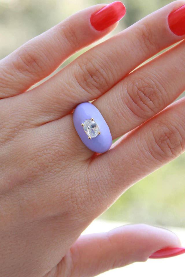 Mor Mineli Baget Taşlı Ayarlamalı Yüzük