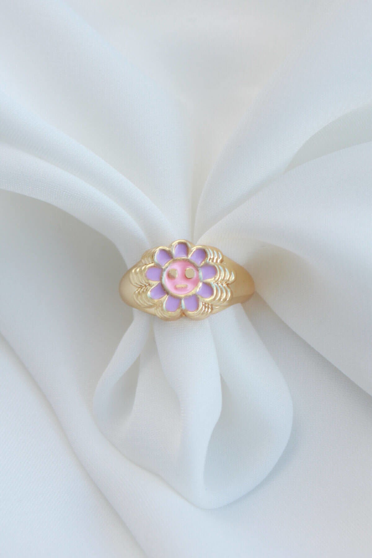 Mor Mineli Gülenyüz Papatya Yüzük - Ayarlanabilir