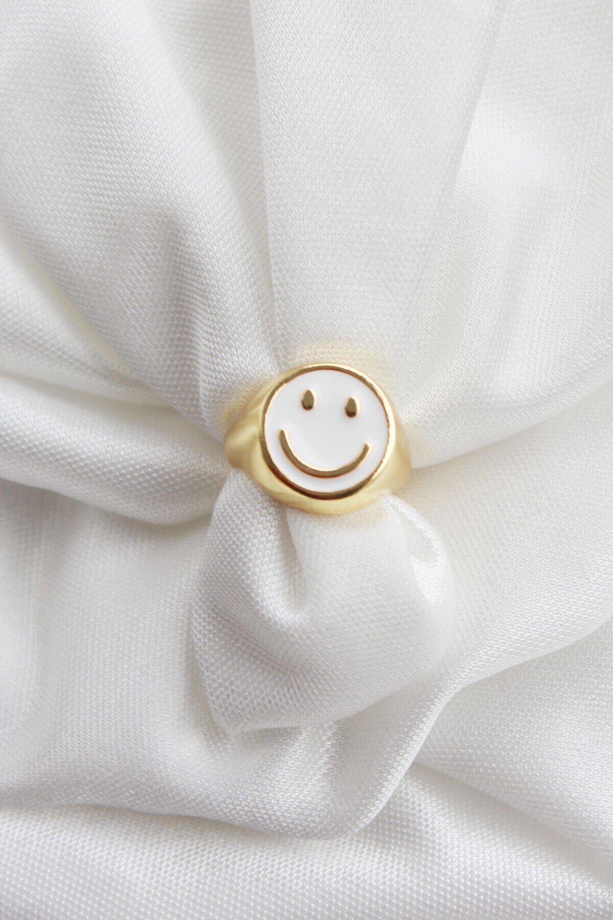 Smile Beyaz Mineli Ayarlanabilir Gold Yüzük
