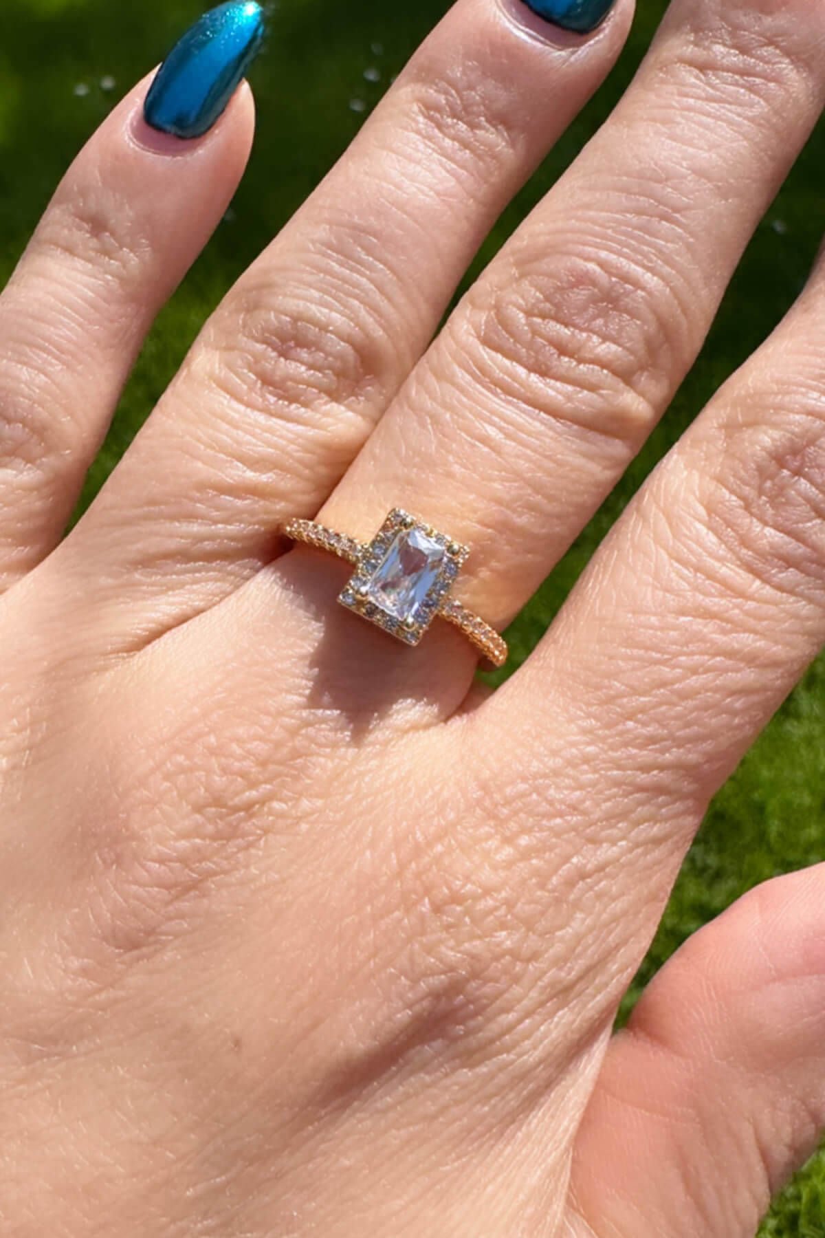 Taş Sıralı Kare Baget Yüzük - Altın Renk